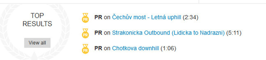 Jelo se mi skvěle - a poměrně rychle. Dobrý pocit potvrdilo nahrání trasy do strava.com - pár osobních rekordů, ze kterých si vážím nejvíc uphillu na Letnou - což je masakr za jakýkoliv čas.