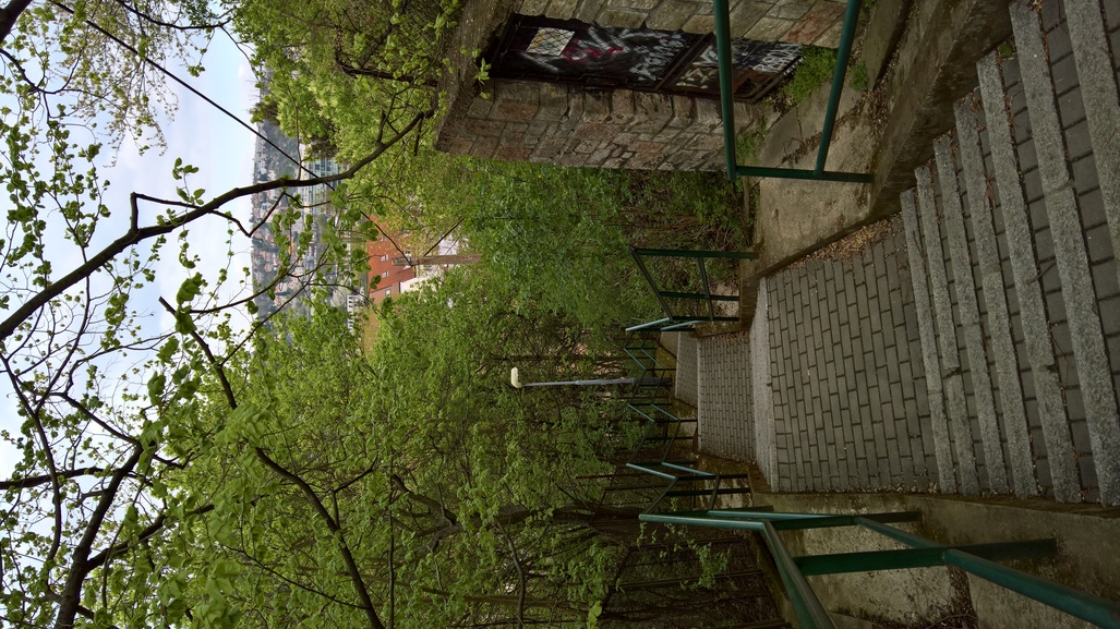 Vybral jsem prakticky nejkratší trasu - z Kafčích hor po schodech  (hele, koleno není 100%, tak ho nebudu trápit kopcem dolů) a po nábřeží na Kampu a CHotkovy sady nahoru.