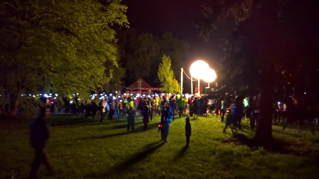 Běh - startovní balíček na mě nevyšel - a prý jich bylo 3500. Takže asi tolik lidí. Na start jsem doklusal tak akorát a zařadil jsem se kamsi ke konci. Už minule jsem si říkal, že je to chyba - chrti vyrazí dopředu a za nimi bude místo, takhle se musím probojovávat odyadu přes mraky pomalejších. A to s tempem 8 minut na kilometr, pěkně prosím. Ještě pozoruju, že i pět kilometrů je pro mnoho lidí limit - obecně kolem čtvrtého začínám předbíhat čím dál víc lidí. A to běhám pomalu a Světlušku jsem bral jako lehoučký výklus.