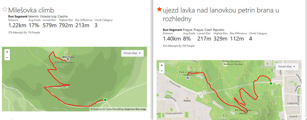 Petřín běhám vcelku na pohodu, ale tohle jsem nečekal. Dva a půl kiláku stoupání, kde není šance vydychnout, stále do kopce. A nahoře se profil ještě zvedá. Tedy, segment je jen kilometr a něco, ale já běžel už z Milešova. Vlastně jako Petřín, jen jednou tolik do kopce.