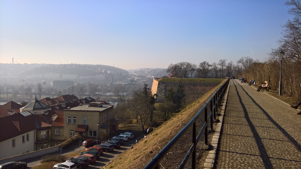 Vzal jsem to přes Vyšehrad na nábřeží a k oblíbeným schodům a tam nahoru.