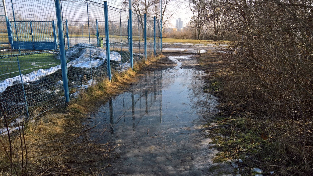 Odpoledne svítíli slunce a na teploměru bylo 16C, když jsem šel já, bylo lehce nad nulou a chodníky namrzaly. Jako prima, tam co už konečně není sníh a led, tak to opět klouže. V kombinaci s Prahou 4, která tu na úklid některých cest zcela rezignovala.