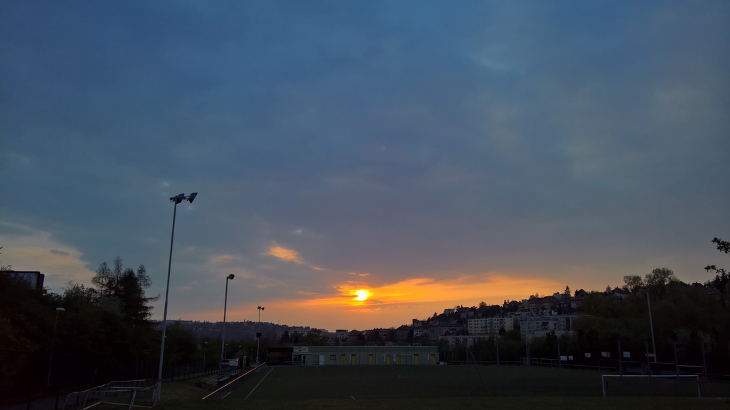u důchodců. Potmě, ale v příjemném teple 16C. Dnes jen dvě kolečka a kvůli kolenu méně běhu, ale vcelku to stačilo.