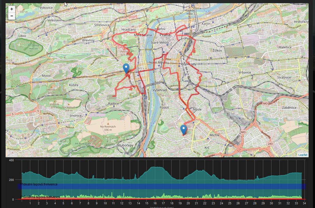 Plus takové drobnosti, že jak jsem si včera dal dvakrát Petřín nahoru, tak dnes to bylo potřetí. A hned pokračování po mé oblíbené zničující cestě přes tři (až čtyři) vrchy (Letná, Hrad, Petřín, Bertramka, Děvím a někdy zpět, 30 km, převýšení kolem 1500m) nad Bertramku.
