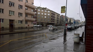 Místo toho myslím jen na ten strašlivej lijavec, který mě chytil kousek před Jeremenkovou a jen tak tak jsem se stihl schovat do průjezdu domu a počkat na autobus. A sledovat poryvy větru, které hnaly stěny deště napříč silnicí.
